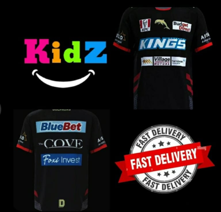 For young fans, the 2023 NRL Redcliffe Dolphins Kids Alternative Black Jersey is available in sizes 2 to 12. It’s comfortable, durable, and perfect for cheering on the Dolphins.